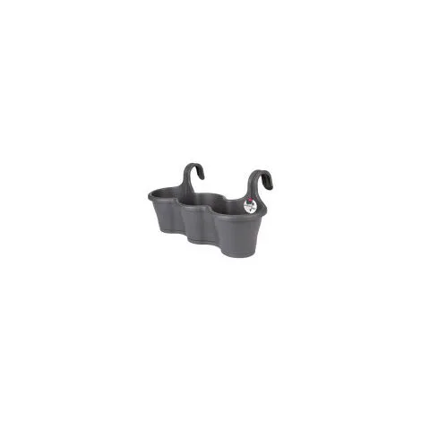 Balconniere Elho. Couleur gris anthracite. S’accroche sans outils a une rambarde de balcon. Avec soucoupe clipsable. Dimensions : 53 x 27 cm. Hauteur : 25,9 cm. Contenance : 8 L….Voir la présentation