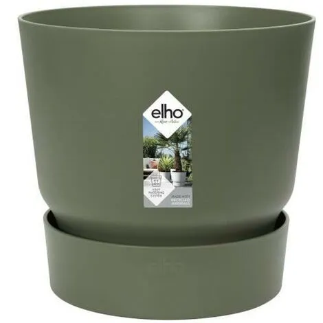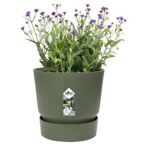 ELHO Greenville Rond 25 – Pot de fleurs – Extérieur – Ø 24,48 x H 23,31 cm – Vert feuille – Fabriqué en plastique de haute qualité – 100% recyclé – Résistant au gel – Convient pour toutes les saisons – Le pot a un réservoir d’eau intégré – Faciles a nettoyer et robustes.