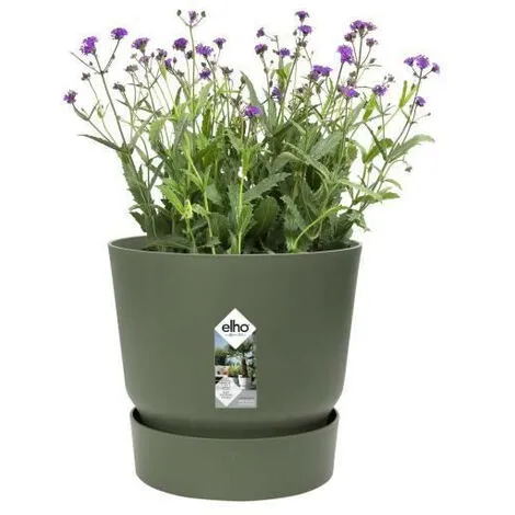 ELHO Pot De Fleurs Rond Greenville 25 – Extérieur – Ø 24,48 X H 23,31 Cm – Vert Feuille